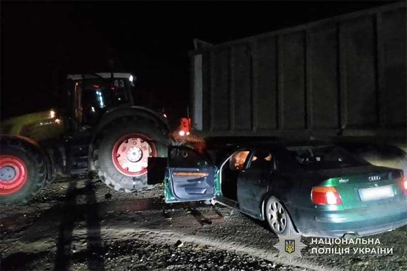 Вчора ввечері, близько 21:00, неподалік села Нові Петликівці Бучацької громади водій автомобіля Audi A4, здійснюючи маневр обгону сільськогосподарської техніки, допустив зіткнення із трактором Fendt 936, який рухався у попутному напрямку. Тілесні ушкодження отримав і водій, і пасажирка Audi. Їх обох госпіталізували.
