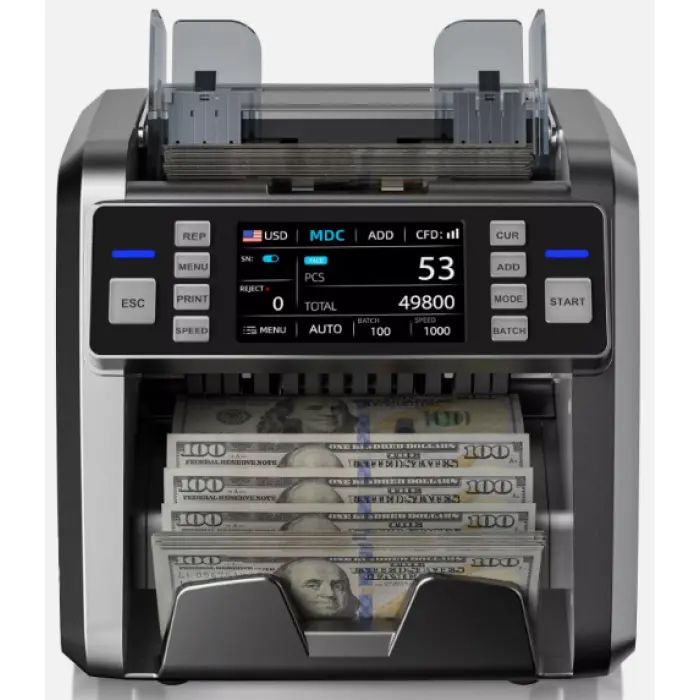 - визначення номіналу – сучасні моделі лічильників можуть сканувати купюри та одразу показувати на вбудованому екрані загальну суму, що зручно під час роботи зі змішаними валютами чи номіналами;