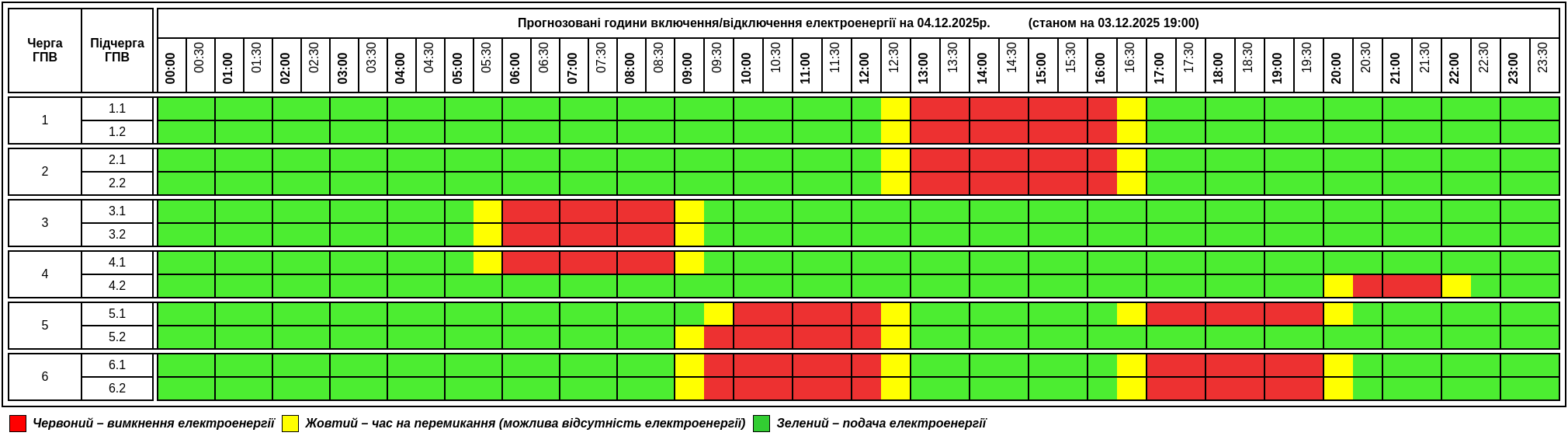 Енергетики зазначають, що графік протягом доби може змінюватися.