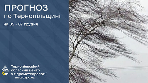 У п’ятницю, 5 грудня, у Тернополі та Тернопільській області хмарно, без істотних опадів. Вітер південно-східний, 7 – 12 м/с, пориви 15 – 20 м/с.