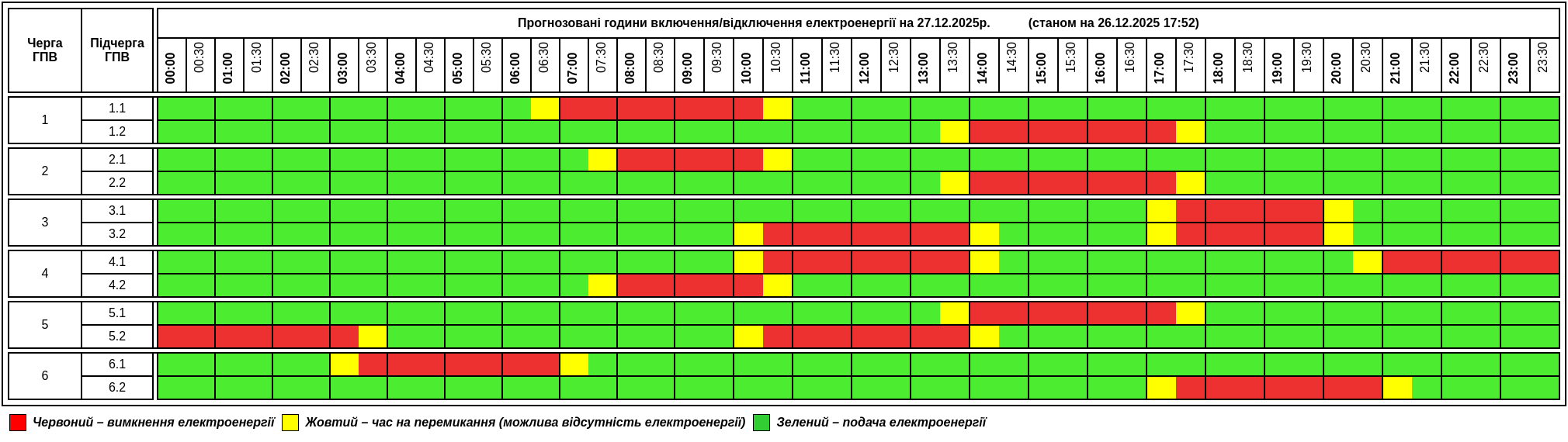 Графік відключення світла на Тернопільщині на суботу, 27 грудня