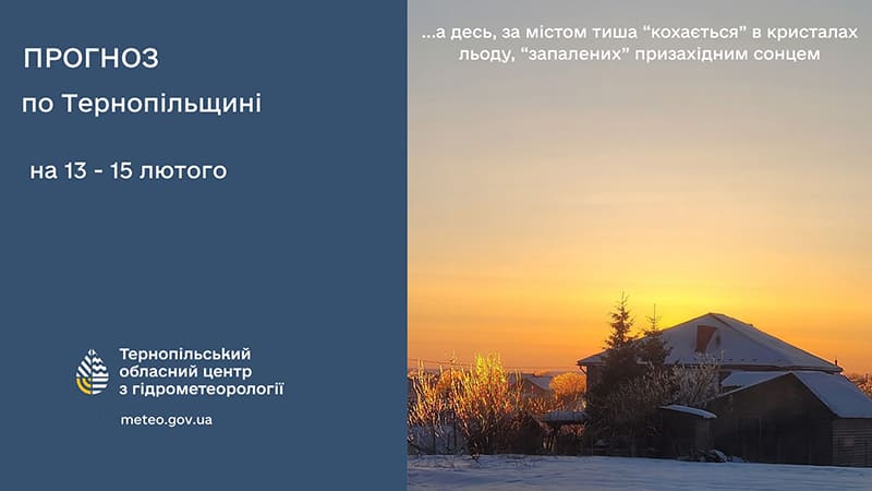 У п’ятницю, 13 лютого, у місті Тернополі та Тернопільській області хмарно, вночі без істотних опадів. Вдень часом невеликі опади.