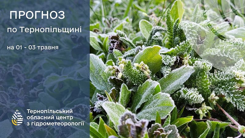 Вночі по області сильні заморозки в повітрі 0 – 3º, температура повітря вдень 9 – 14º тепла; по м. Тернополю вночі сильні заморозки в повітрі 0 – 2º, температура повітря вдень 11 – 13º тепла.