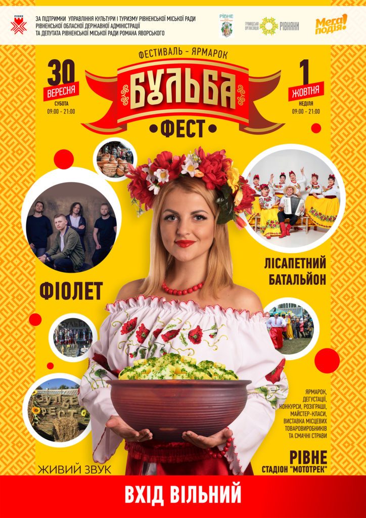 На два дні під відкритим небом в Рівному на стадіоні «Мототрек» зберуться кращі аграрії, виробники, представники закладів харчування Рівненщини та інших регіонів України, адже 30 вересня – 1 жовтня відбудеться Всеукраїнський фестиваль – ярмарок «Бульба-фест».